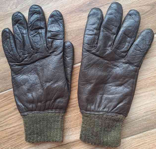 Prodám tmavě hnědé kožené rukavice, s tmavě zeleným úpletovým lemem a podšívkou, teplé, prstové, značené velikost 9, vojenské, cca 80. léta. Šířka přes klouby cca 12 cm, délka cca 28 cm, dobrý stav. Cena 100 Kč + poštovné.