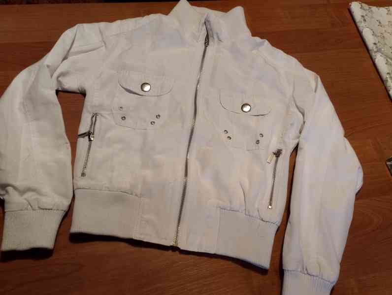 dívčí bunda 36 bílá s motýlem délka 50 cm přes prsa 96 cm rukáv 56 nošená párkrát cena 90,-kč + zásilkovna