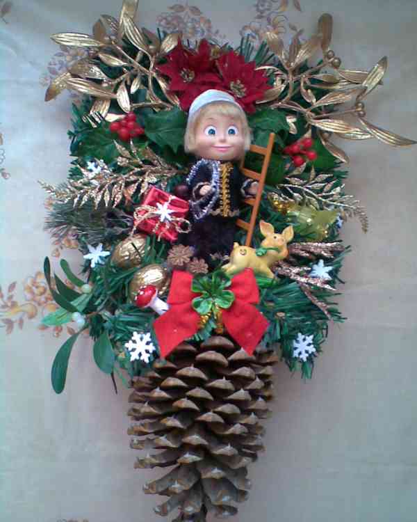 zdobená velká šiška s kominíkem a prasátkem, konská podkova pro štěstí, hrající sněžítko Betlém, Santové se sánky a soby, na svíčku, sněžítko