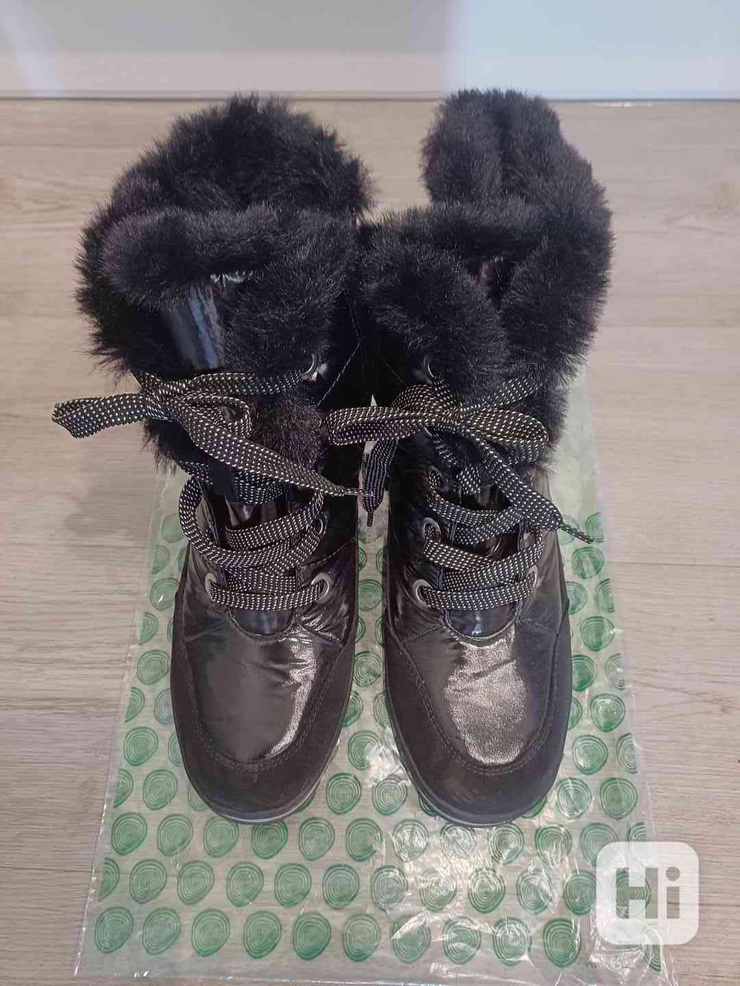 Prodám zimní dámské kotníčkové boty zn. Caprice vel. 40 s postranním zapínáním na zip. Materiál semiš a koženka, uvnitř zateplené. Velice snadné nazouvání. Nošené týden. Původní cena 1500 Kč. Pouze osobní odběr na Praze 3.