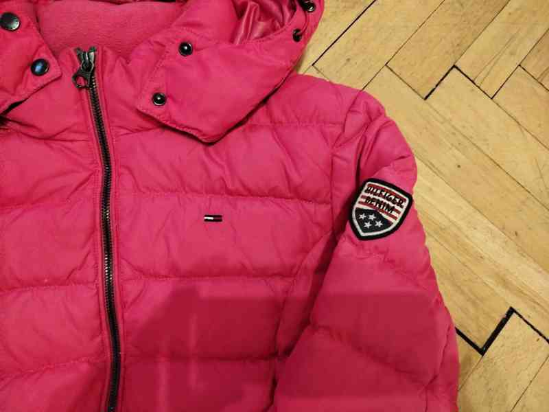 Prodám použitou dámskou péřovou bundu značky Tommy Hilfiger, vel. S/M, v pěkném stavu, doporučuji dát ji vyčistit, kolem krku a rukávů lehce špinavá, původní cena 4 500, rozměry: šířka ramen 42 cm x 2, přes prsa 48 cm x 2, 45 cm x 2 pas