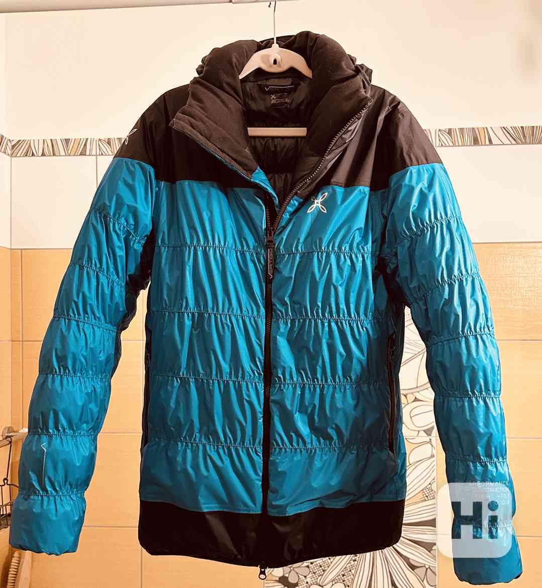 Nová (nenošená-je mi malá) dámská zateplená celorozepínací bunda Montura SUMMIT 2.0 DUVET W - je vyrobena z lehkého nylonového 2,5 vrstvého materiálu s DWR vodoodpudivou úpravou a 15K- 15K membránou. Kombinace peří zajišťuje perfektní tepelnou izolaci a pohodlí (90 % bílé kachní peří a 10 % bíle kachní prachové peří - 790 CUIN), nano-technologie umožňuje rychlejší schnutí než klasické peřové bundy, inovativní systém výplně se skládá z peří a Comfortemp®, oboustranný centrální zip, boční a náprsní kapsa na zip, 2 otevřené vnitřní kapsy, elastické lemy na zápěstí a kolem kapuce, nastavitelná kapuce s elastickým lemem, speciální strečové švy na vnitřní straně zajišťují lepší přilnavost a lépe tak sedí, ergonomický střih. Velikost: L, váha: 690 g, barva: marine (tmavší odstín modrozelené). Montura je italská společnost zaměřující se na technické oblečení a boty a na outdoorové aktivity na horách.