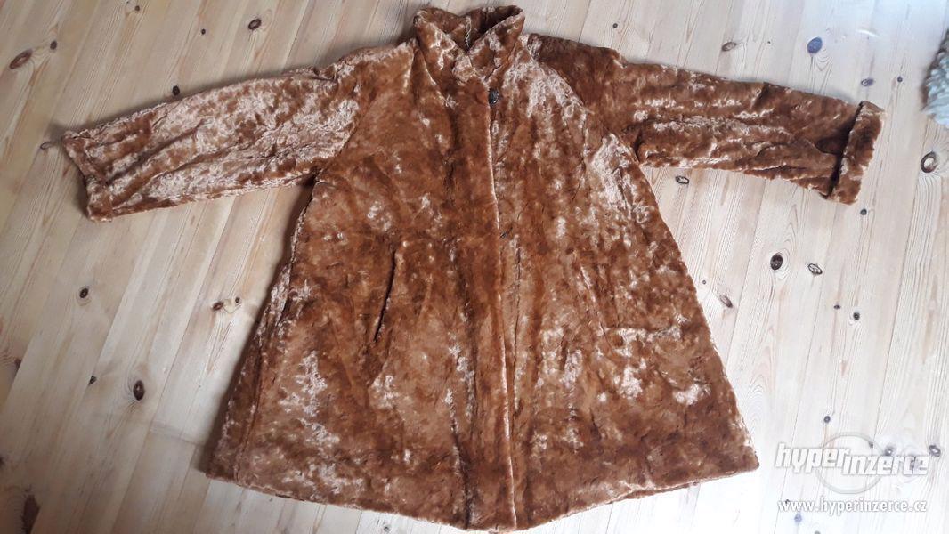 Prodám krásné hnědé (kaštan) paleto - umělá kožešina zn. Lullaby, nové - nenošené, uváděná vel. 44, 1 knoflík u krku, v polovině očko na zachycení háčku, kapsy; délka od límce dolů 88 cm, délka rukávů od krku 78 cm (lze ohrnout).