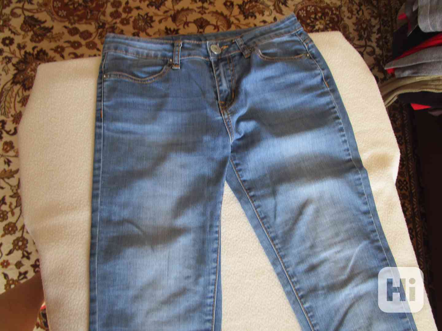 Pěkné modré elast. rifle zn. Amisu, vel. S, pas 72-76 cm, boční délka 102 cm, cena jen 69 Kč.