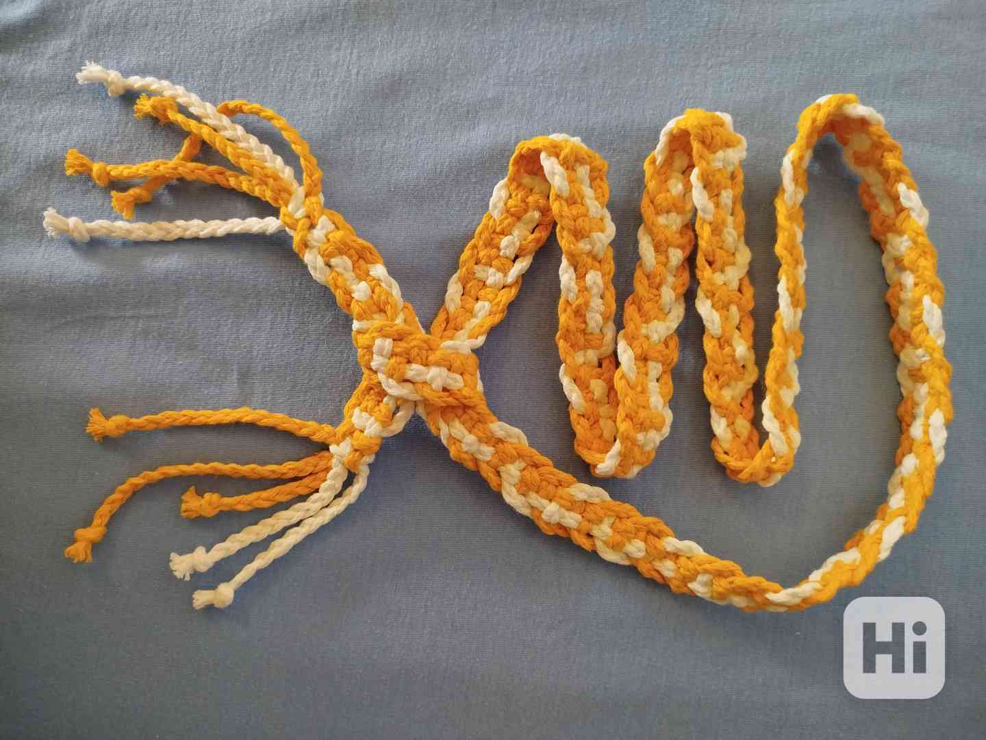 pásek drhaný macramé bíložlutý z 5ti 130 cm