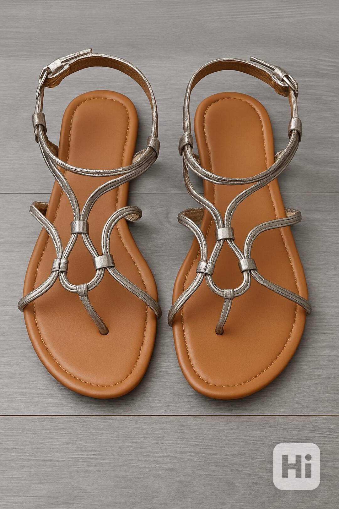Prodám nové, nikdy nenošené dámské sandály ve stříbrném provedení.