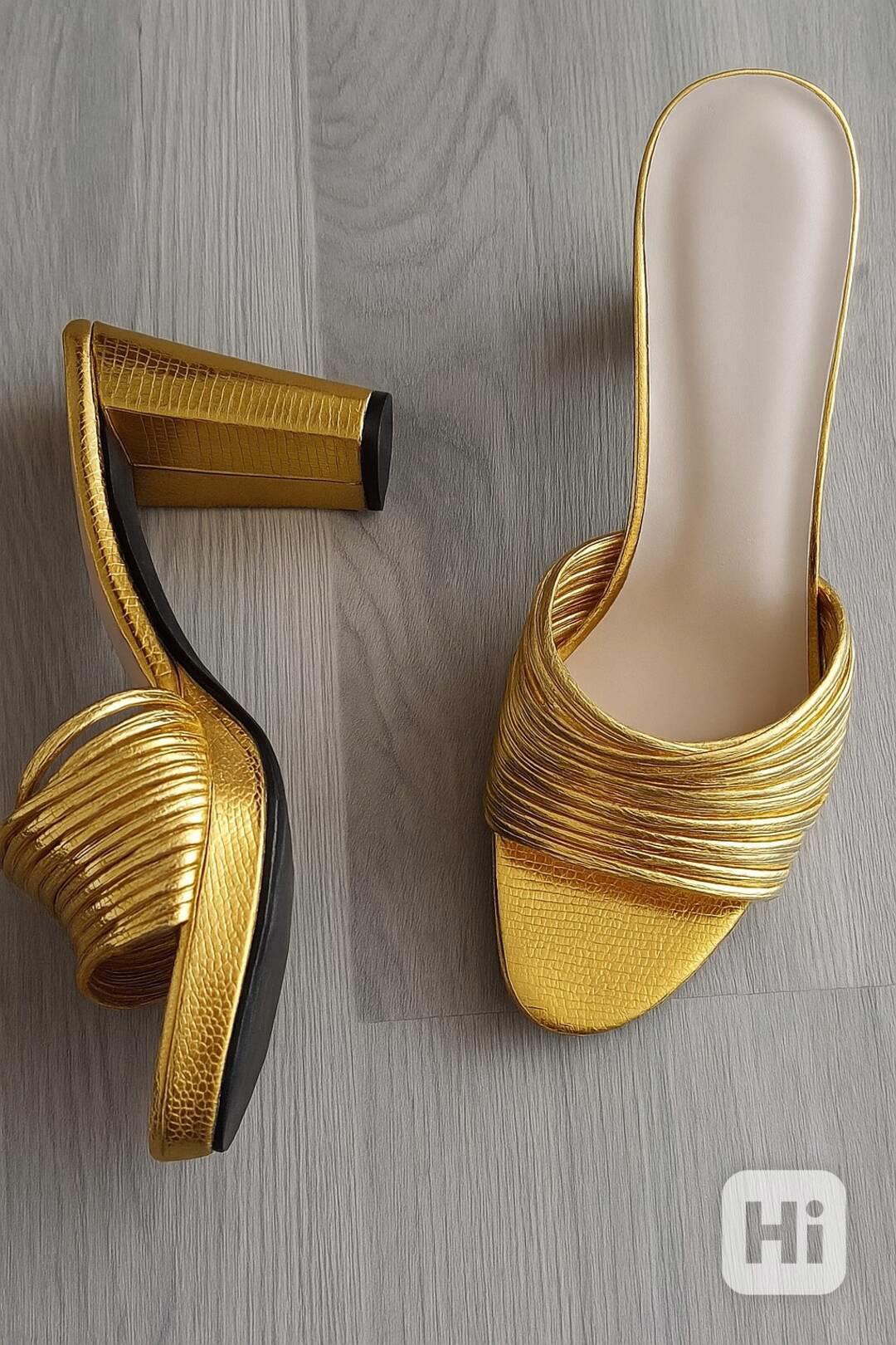 Prodám nové, nikdy nenošené dámské pantofle v elegantním zlatém provedení.