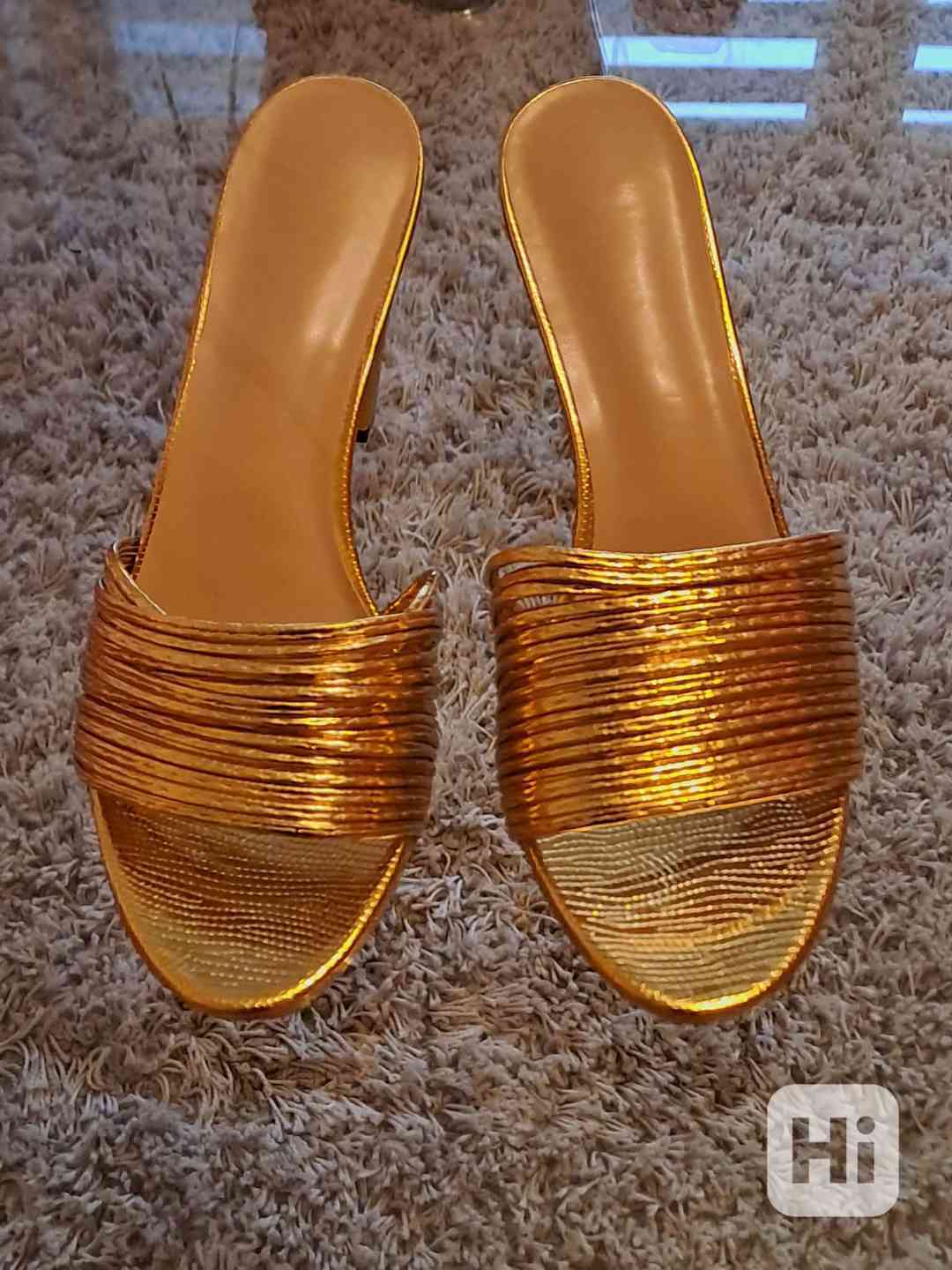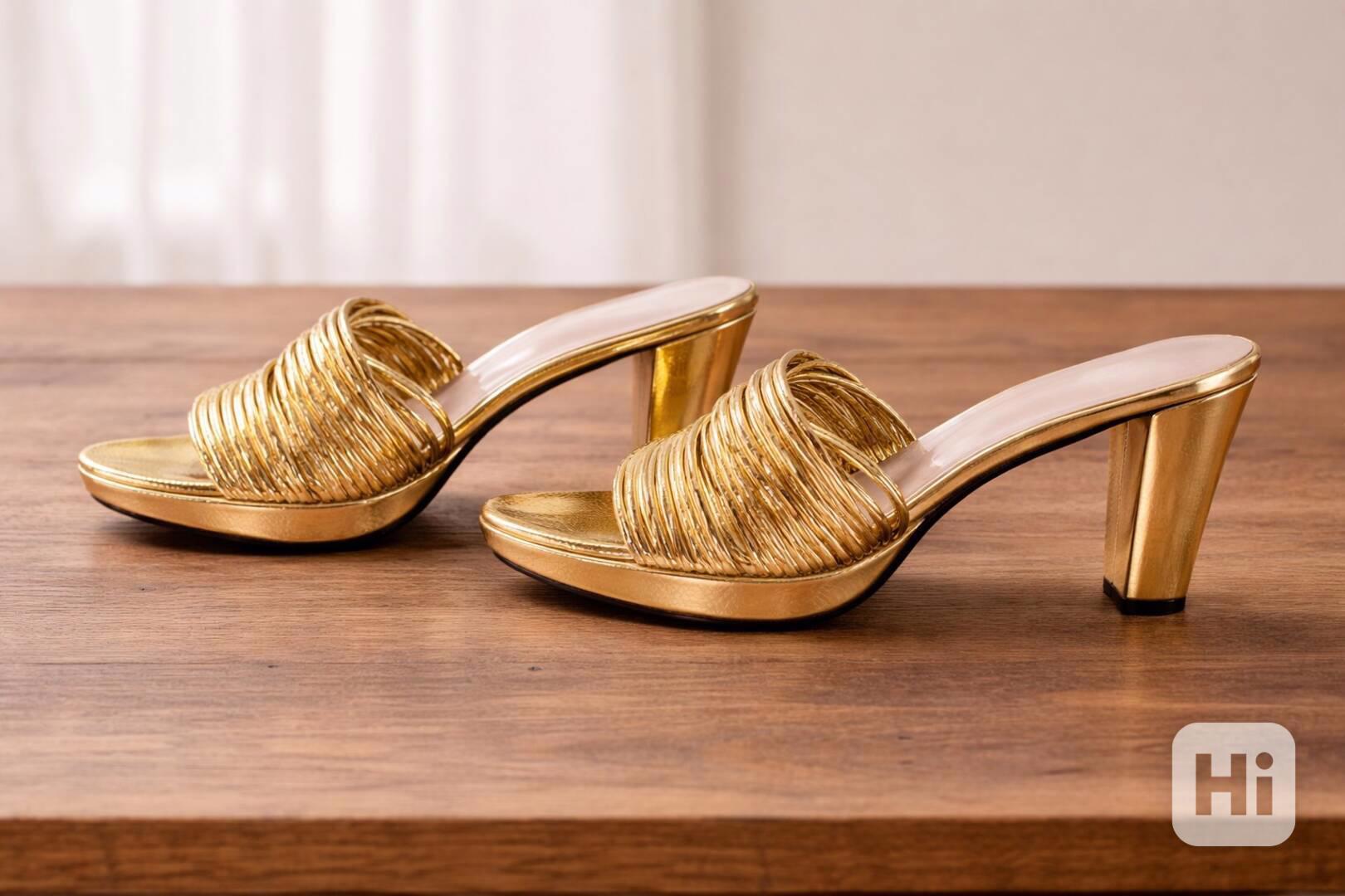 Podpatek: stabilní, středně vysoký, ve zlatém provedení