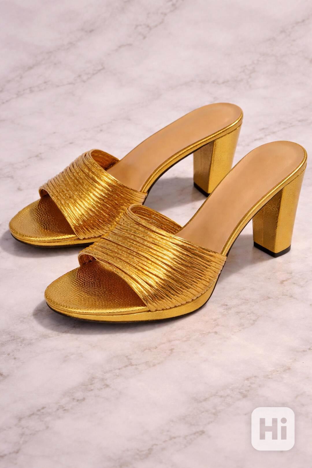 Podpatek: stabilní, středně vysoký, ve zlatém provedení