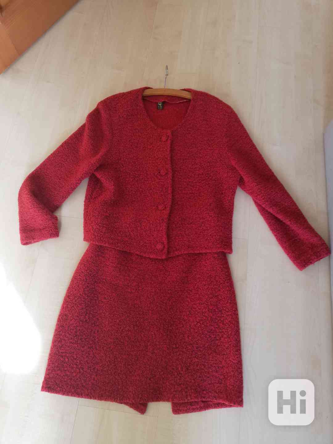 prodam damsky upletovy kostym vel 38-40.Sukne delka 47cm,v pase vsita guma cca 78cm,sako rovne-nepodsivkovane.Smesovy material-mozne prat na 30 st.Zaslani zasilkovnou mozne