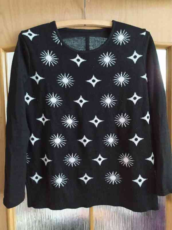Dámský černobílý pužný svetr.Délka je cca 60.cm.Zašlu klasicky poštou nebo zásilkovnou či balíkovnou.