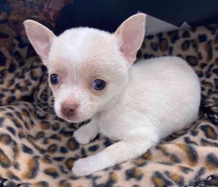 12týdenní štěňata čivavy, velmi hravá, společenská a extrémně roztomilá!!! Jsou registrovaná a mají všechna očkování a odčervení. Dorazí s garancí zdravotního stavu. Oba rodiče jsou na místě. Otec váží 1,5 kg. Matka váží 2 kg. Štěňata jsou dospělá a podle růstového grafu budou vážit kolem 1,5 až 2 kg.