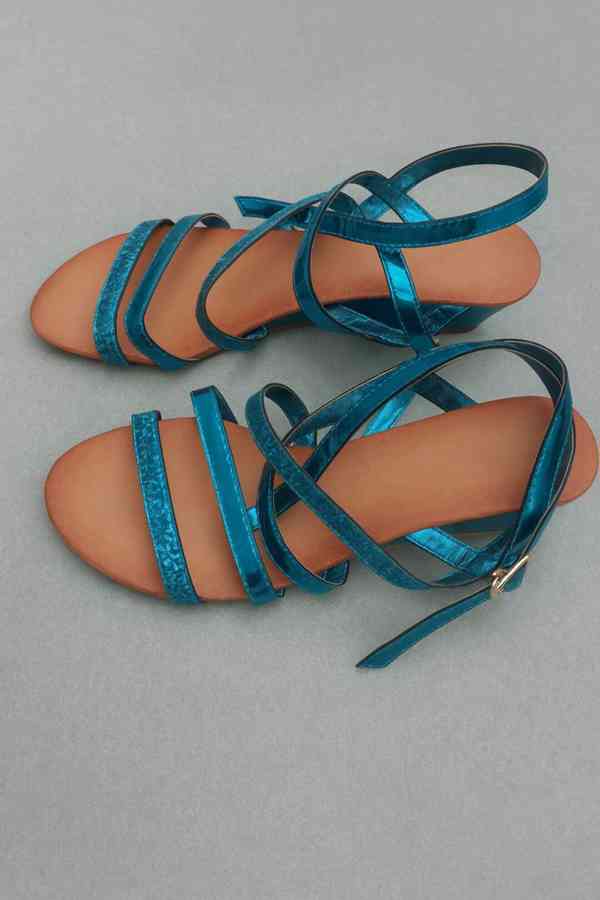 Prodám nové, nikdy nenošené dámské sandály v výrazné tyrkysové barvě.