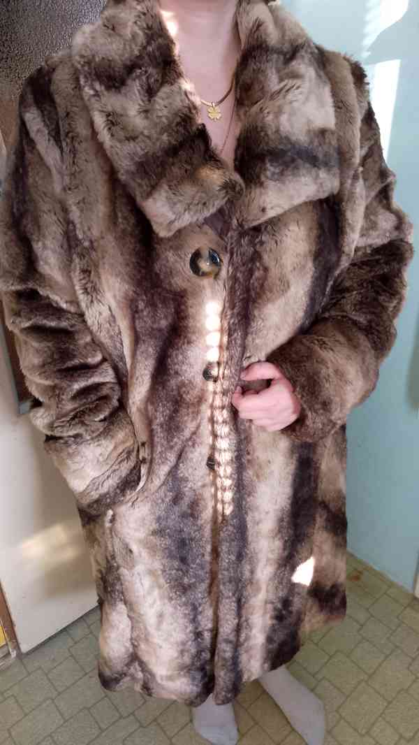 Dámský kožich z umělé kůže, velikosti L s podšívkou a kapsami. Hřejivým stojáčkem, zapínáním na háčky a knoflíky, coby ozdobu. Při rychlém jednání možná sleva! Zašlu Zásilkovnou/Balíkovnou - do konce listopadu za 50 Kč*