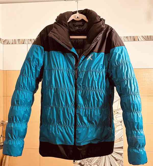 Dámská zimní bunda s kapucí - málo nošená. Barva lososová v kombinaci s šedou barvou. Velikost M - L. Obvod přes prsa 2x50cm. Délka bundy 62 cm. Délka rukávu 60.