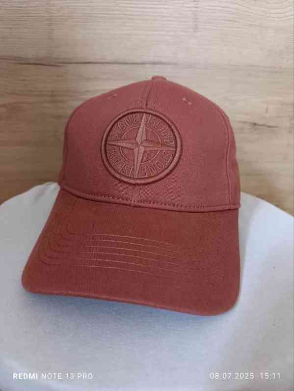 Originální kšiltovka Stone Island v cihlově červené (rust) barvě. Na přední straně je plastické, tón-v-tónu vyšívané logo kompasu. Klasický střih se šesti panely a prohnutým kšiltem. Uvnitř originální štítek Stone Island s Certilogo kódem (CLG) pro ověření pravosti. Kvalitní bavlněný materiál, pevné zpracování, vhodná na každodenní nošení.