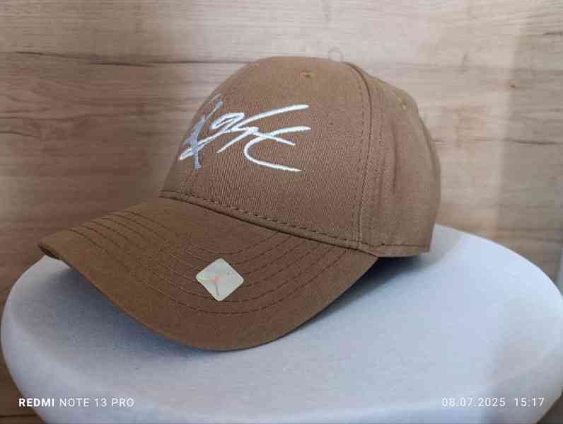 Klasický střih se šesti panely a prohnutým kšiltem. Stylový sportovně-streetový doplněk. v béžové / camel barvě s bílou výšivkou „Flight“ a ikonickým logem Jumpman na přední straně. Na zadní části je další vyšívané logo Jumpman a nastavitelný pásek s kovovou sponou s nápisem Jordan.