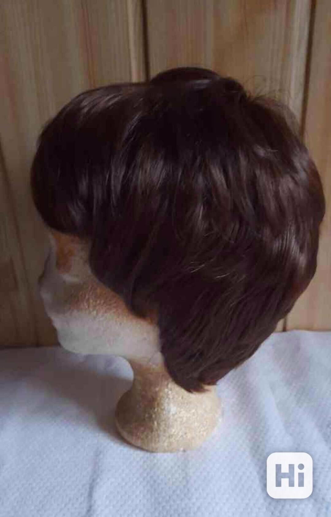 Nabízím dámskou paruku, nová, nenošená, tmavohnědá, v zadu prodloužený střih, cena 300 Kč + zásilkovna.
