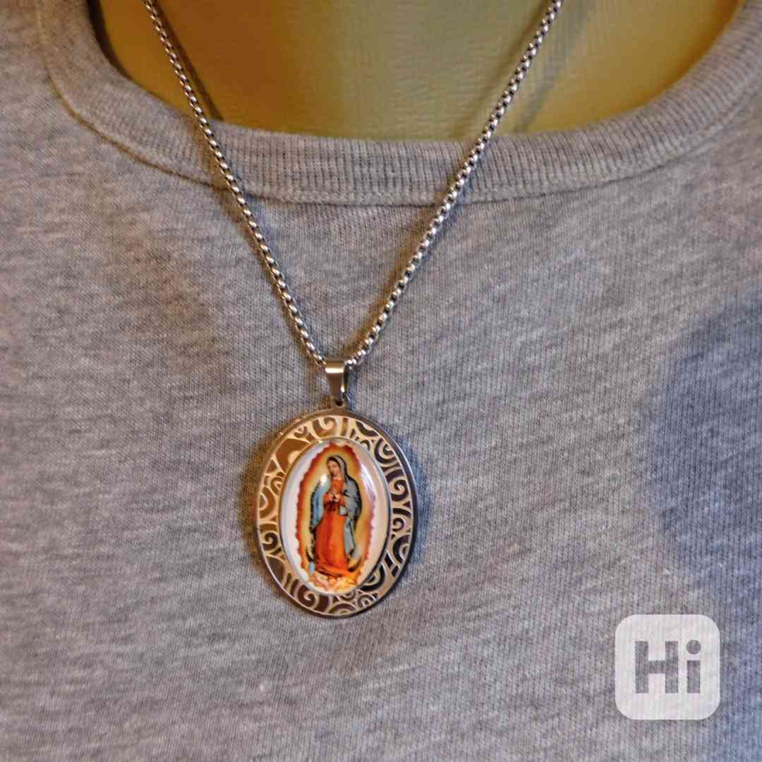 Nerezový řetízek s ozdůbkou , náboženský amulet panna Marie