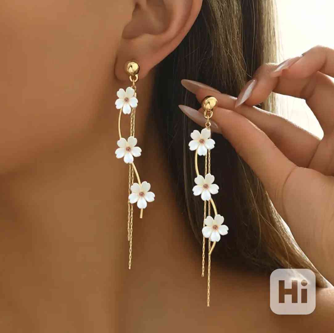 Luxusní dlouhé květinové náušnice s jemnými řetízky - Objevte luxusní dlouhé květinové náušnice se zlatými detaily. Jemné, romantické, ideální pro nevěsty, slavnostní i každodenní eleganci.