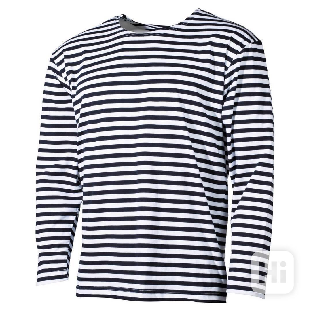 Ruské námořnické triko s dlouhým rukávem navy-bílé (tmavá námořní modrá, skoro až do černa), vhodné na léto. Od německé značky MFH.