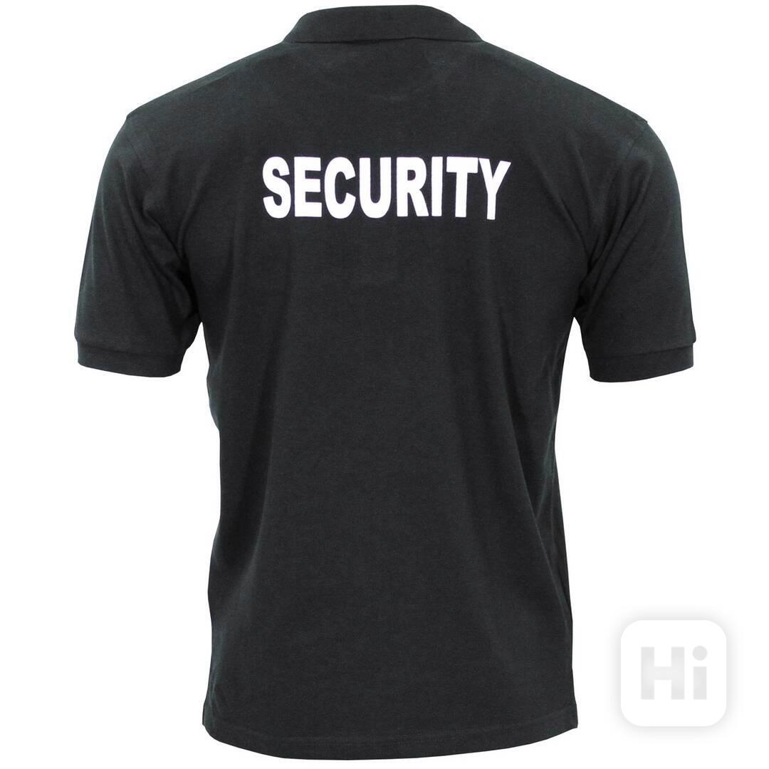 S nápisem Security na hrudi i na zádech.