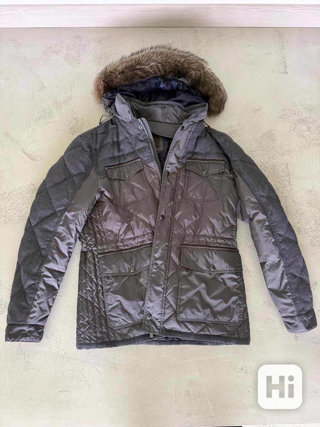Luxusní pánská zimní bunda Massimo Dutti. Perfektní stav 9/10, nošená minimálně. Vnitřní štítek byl odstřižen, překážel. Odnímatelná kapuce s kožešinovým límcem. Lze odejmout celou kapuci nebo jen kožešinu. Velmi lehká, pohodlná a teplá. Uvedená velikost XL, ale sedí na klasické L nebo i na větší M. Šířka přes prsa 61 cm, délka rukávu od ramene 68 cm, celková délka 76 cm. Pořizovací cena 250 EUR !!! Prodám za 999 Kč.