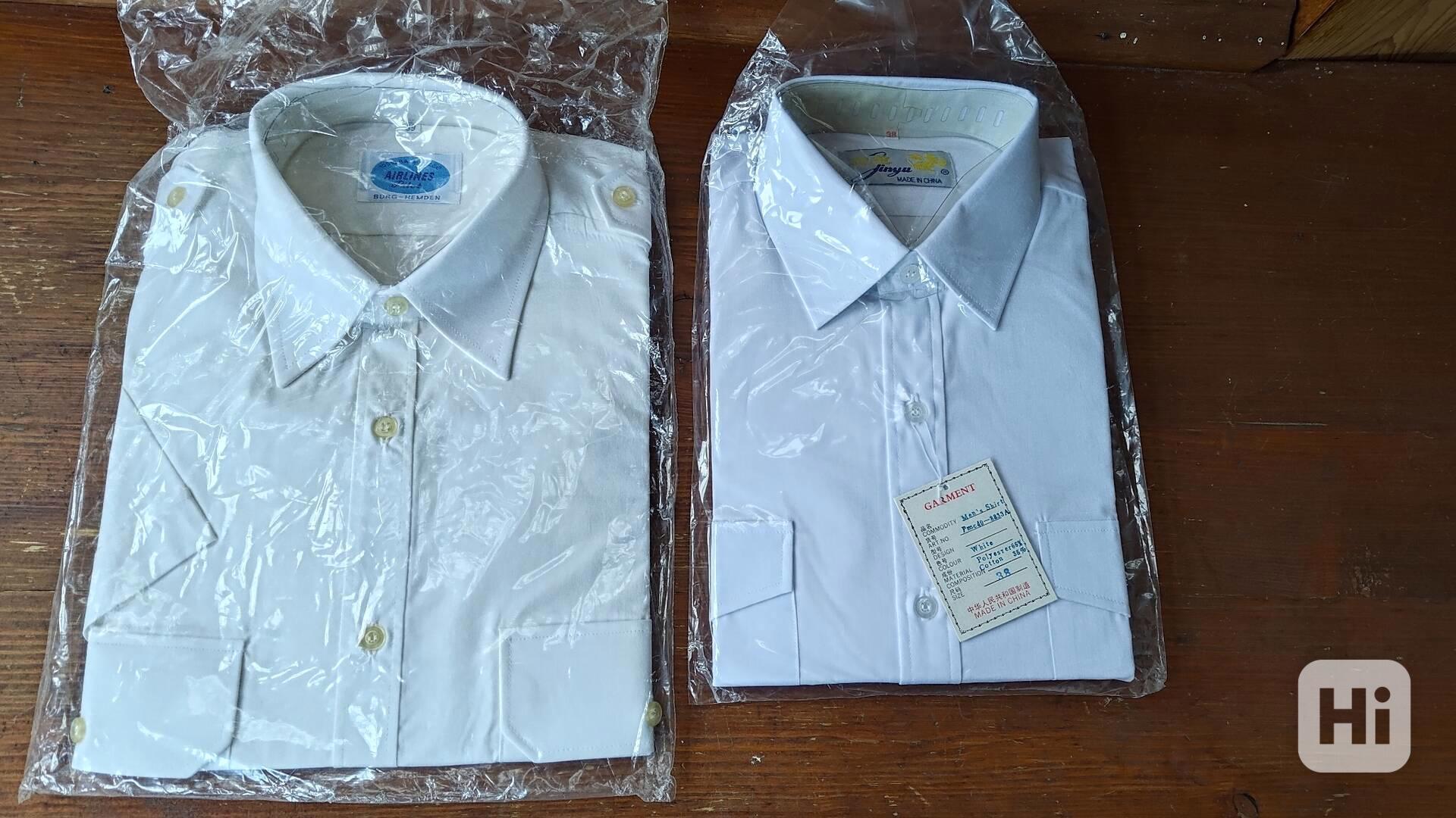 Bílé pánské košile vel. 38 a 39, nové, nepoužité, nevybalené, s nárameníky. 1 x Airlines Pilot, Burg Hemden, vel. 39, 100 BA; 1 x Jinyu, China, vel. 38, 35% BA, 65% PES. Netknuté, 100% čisté, kvalitní. K vyzvednutí v Praze 9 nebo na M v Praze, neposílám.
