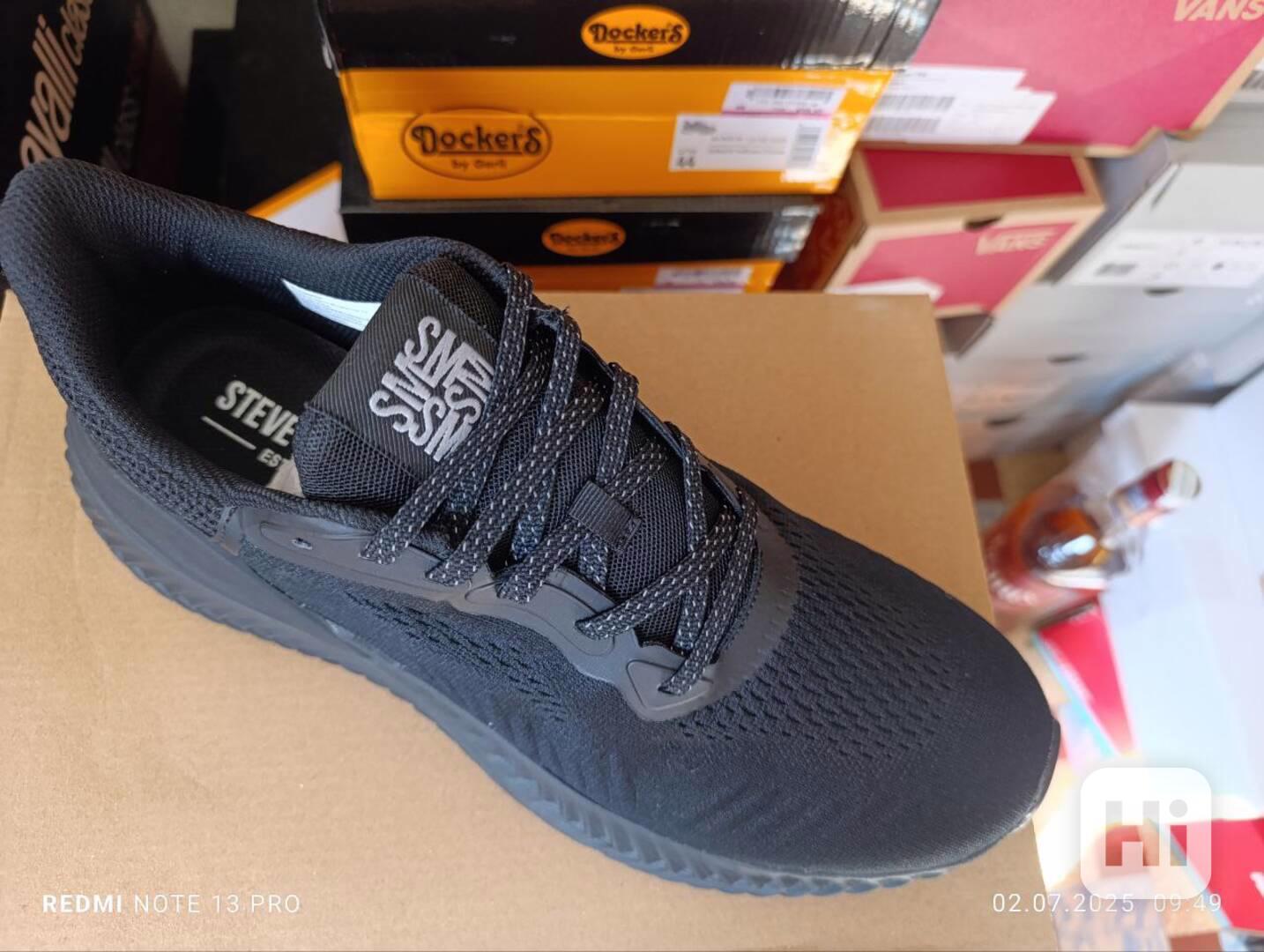 Pánske športové tenisky Steve Madden Slammer v čiernej farbe. Moderný, minimalistický dizajn vhodný na každodenné nosenie aj voľnočasové aktivity. Zvršok je vyrobený z priedušného textilu a syntetických materiálov, ktoré zabezpečujú pohodlie počas celého dňa. Mäkká vnútorná výstelka a polstrovaný golier zvyšujú komfort.