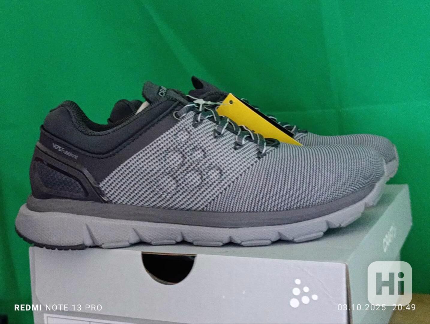 Design: Obuv na obrázku je v šedo-černé barevné kombinaci s výrazným logem Craft na jazyku.