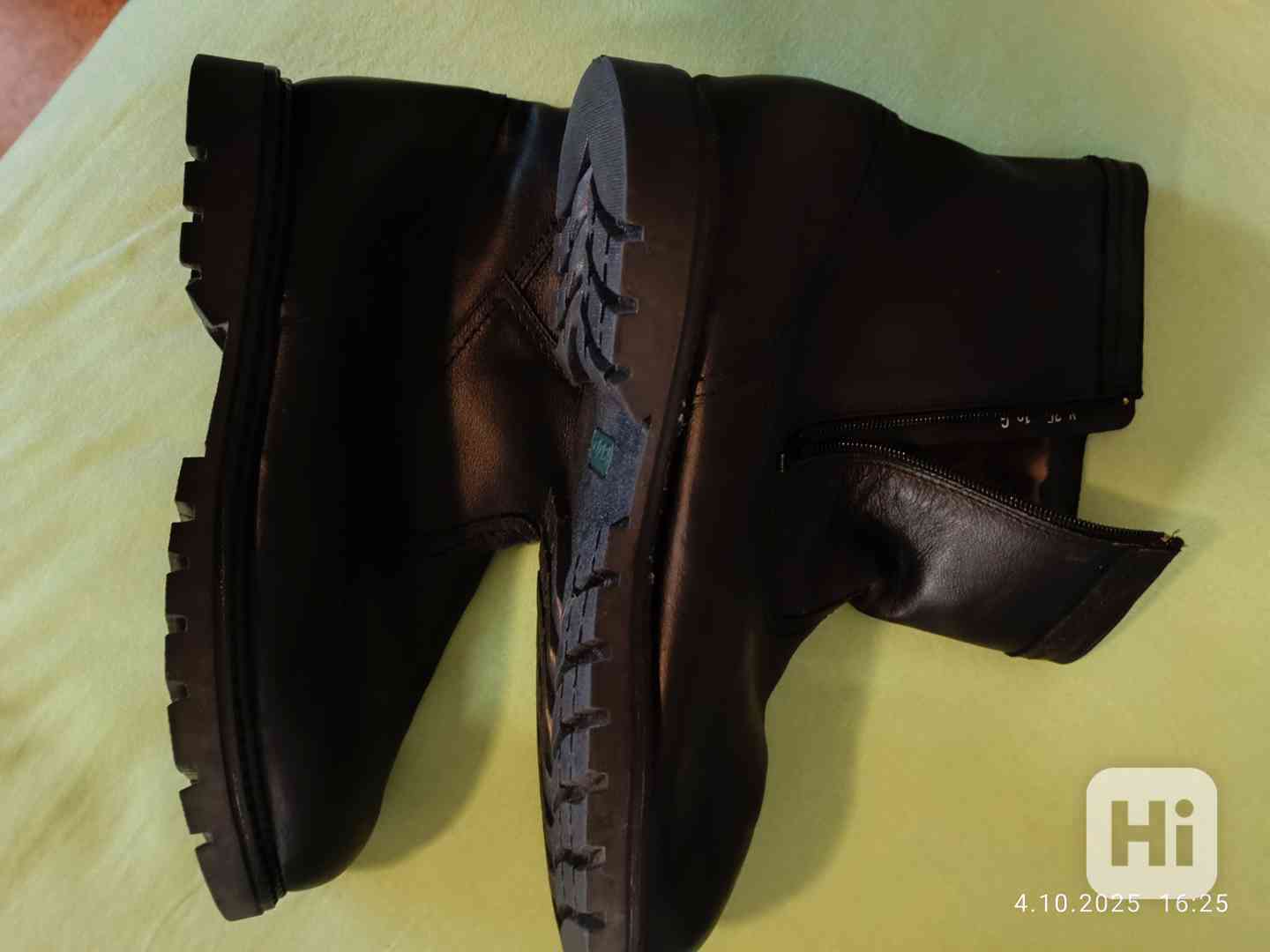 Prodám nové KOŽENÉ ZIMNÍ BOTY, nižší holeňové, uvnitř kožíšek, vel.30 (tj.10, 46) černé pohodlné, uvnitř mají teplý kožíšek v hnědé barvě, na vnitřní straně zapínání na pevný zip. Podrážka s hlubokým zimním vzorkem, spodek šitý. Boty jsou kvalitně ušité a pohodlné. Výroba ČR. Nejlépe osobní odběr Plzeň.