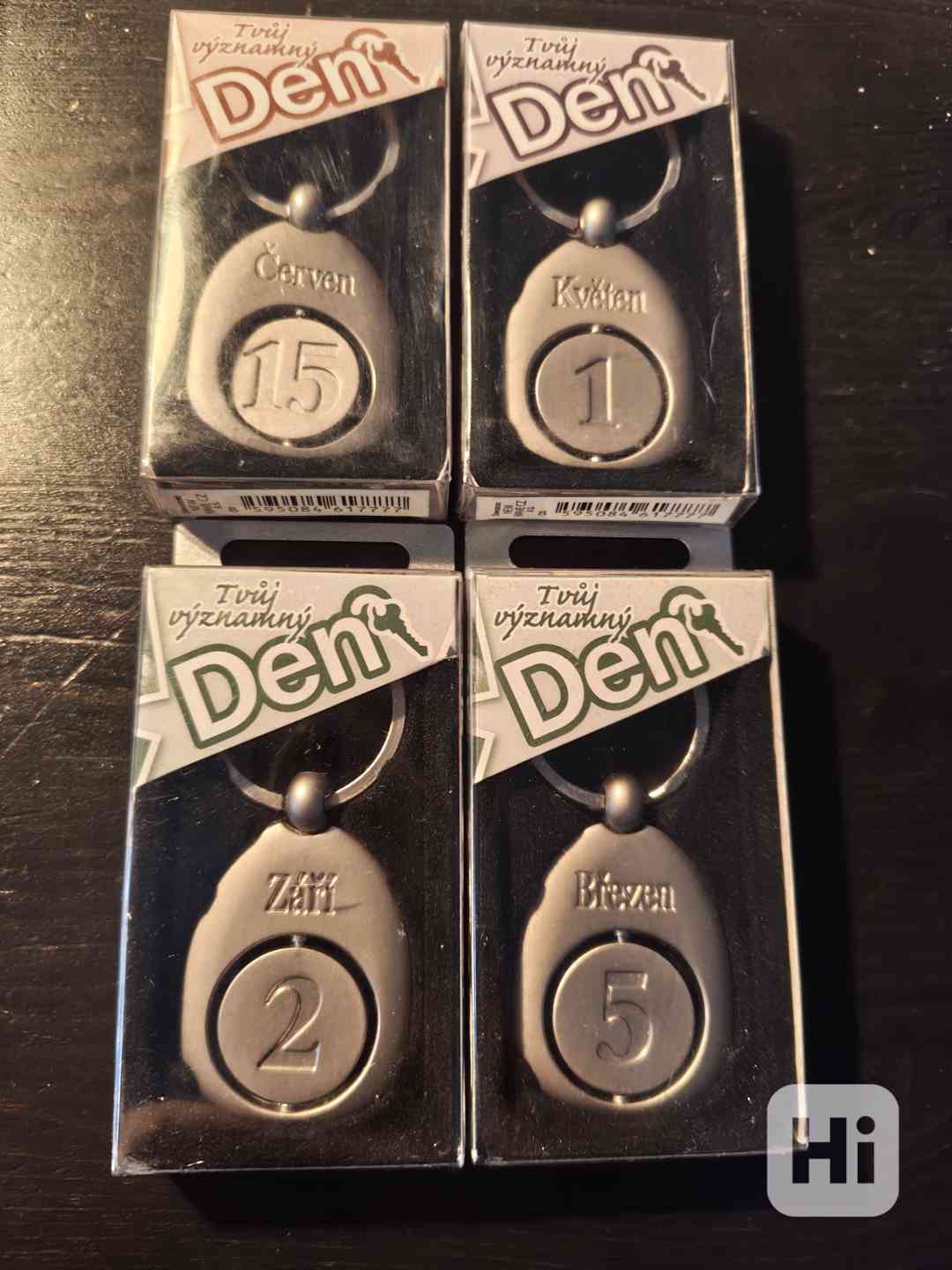za kus, přívěšek na klíče "Tvůj významný den" - 15.června, 1.května, 2.září a 5. března, takže pro toho, kdo má tento den svátek nebo narozeniny.