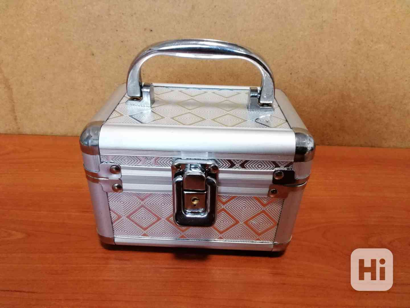 Prodám šperkovnici včetně cca 15 ks různě velkých korálkových náramků (dámské, dětské), barva stříbrná, materiál hliník a chrom, a cca 15 párů náušnic a přívěsků, vnitřek růžová plsť, délka 135 mm, hloubka 95 mm, výška 95 mm, uvnitř zrcátko 70 x 40 mm, k zámku chybí klíček, nepoškozená, nepoškrábaná, jako nová. Cena 300,- Kč