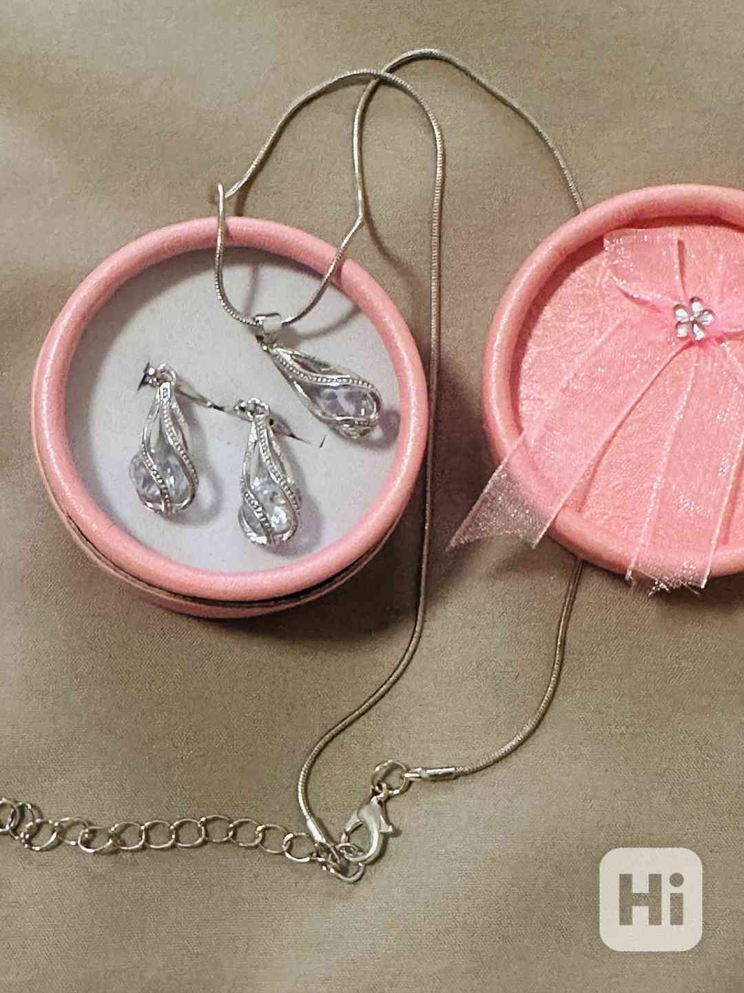 Elegantní sada náušnic a náhrdelníku s přívěskem s imitací zirkonu.
