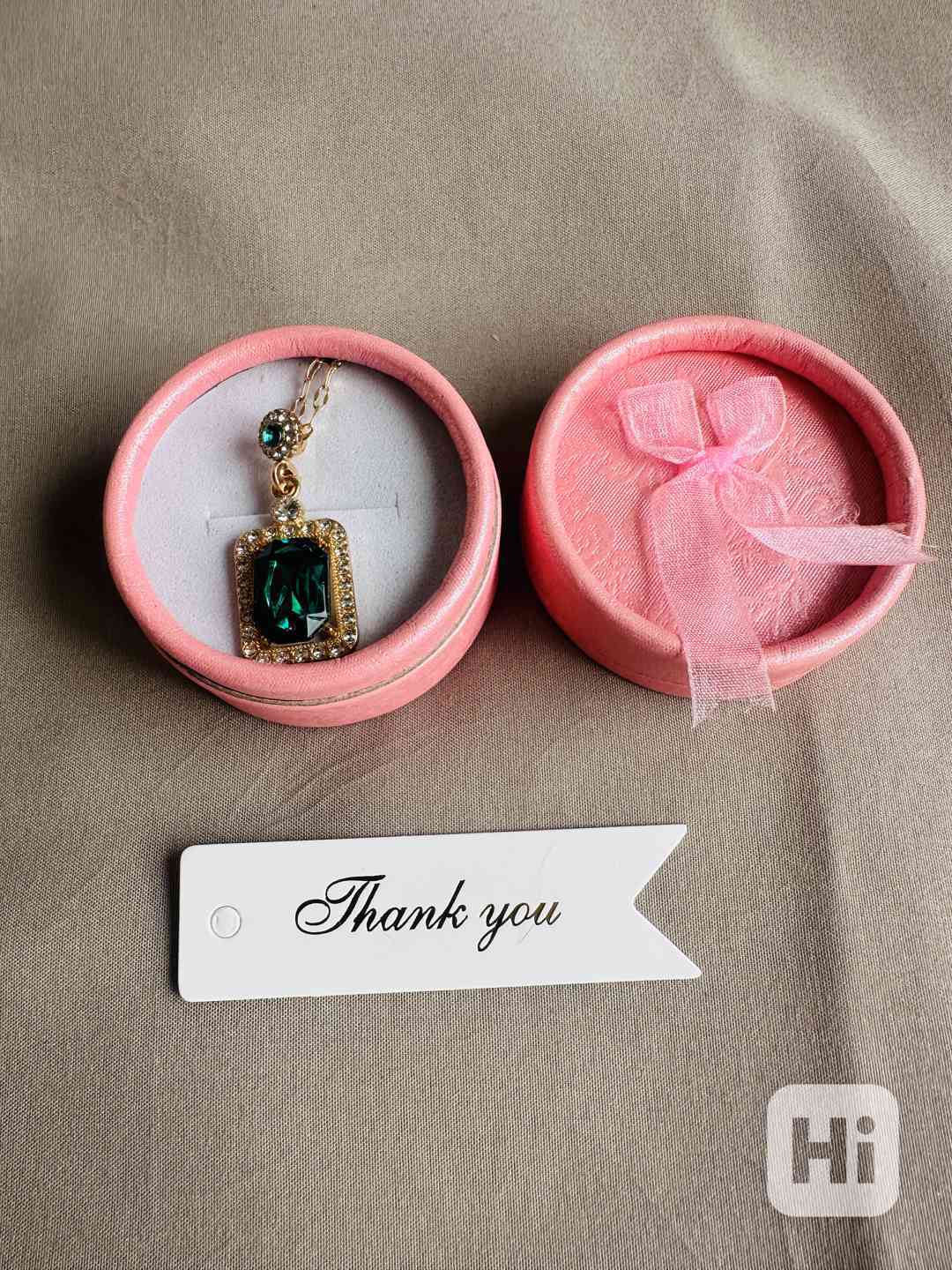 Elegantní přívěsek s jemným zeleným kamenem dodá vašemu outfitu nádech luxusu.